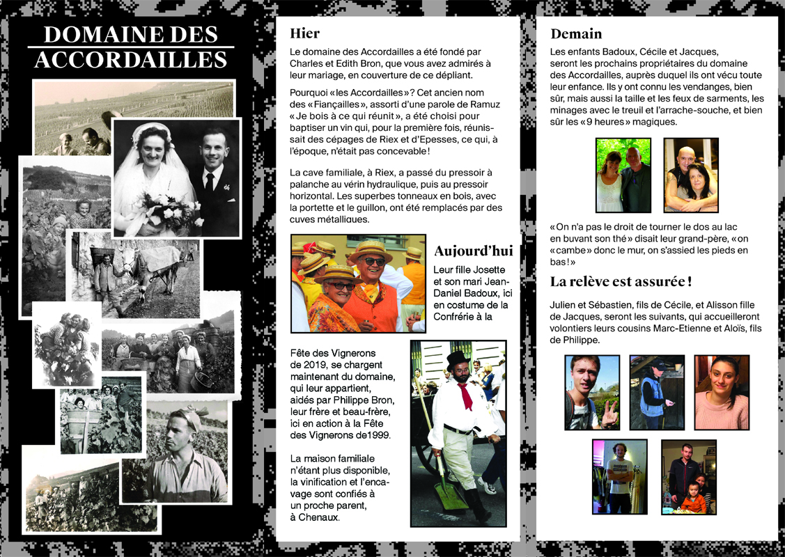 Les images suivantes, tirées de notre dépliant, vous raconteront brièvement l'histoire du Domaine des Accordailles, à Epesses, et de ceux qui en ont repris les rênes. En effet, géré depuis quelques années par un autre vigneron, le domaine revient dans la famille, avec son vin et sa capite, que nous évoquons plus loin.